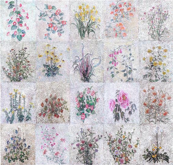 그래서 한 가지 색을 취하기 위해 파내고 깎고 문지르고 칠하고 지우고 닦기를 반복한다. 어렵게 얻어낸 색채와 형태도 다듬고 가다듬기를 여러 차례 반복해 겨우 들꽃 모습을 취한다. 손이 가는 대로 빠르게 제작하기보다는 조금 더디더라도 공력을 들인다.