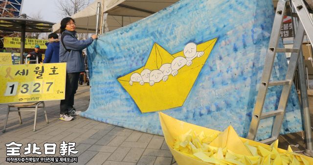 세월호 지킴이는 지난 3년간 전주 시내에 세월호 외침막 5000여 장을 내걸면서 생각이 다른 이들과 싸우기도 했다.