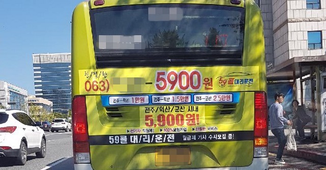 ▲ 전주시내버스 후면광고에 부착된 ‘5900원 대리운전’ 광고물