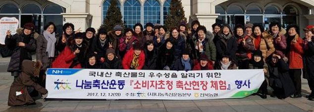 전북농협(본부장 강태호)과 (사)나눔축산운동본부는 12일 소비자를 초청해 축산 현장을 견학하고 체험하는 행사를 가졌다. 이번 행사는 소비자들에게 축산 현장을 직접 보여줌으로써 국내산 축산물의 우수성과 신뢰성을 높이고 이를 통해 소비확대를 유도하기 위해 기획한 나눔축산운동 행사의 일환이다.