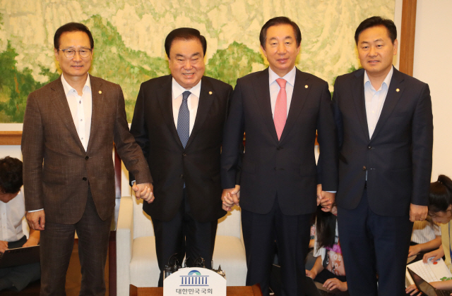 더불어민주당 홍영표 원내대표는 이날 모두발언에서 “특활비 문제에 여야 간 완전히 폐지하는 것으로 합의했다”고 밝혔다. 자유한국당 김성태 원내대표도 “특활비 폐지를 통해 우리 사회에서 기득권적이고 정의롭지 못한 제도의 일면을 걷어낼 수 있게 돼 다행스럽다”고 설명했다.