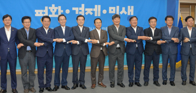 민주당은 13일 전북도청에서 호남권 3개 시·도 예산정책협의회를 개최했다. 이날 협의회에는 민주당 홍영표 원내대표, 이춘석 사무총장, 김태년 정책위 의장, 윤호중 예결위 간사, 송갑석·서삼석 예결위원, 강병원 원내대변인, 안호영 전북도당 위원장과 송하진 전북도지사, 이용섭 광주시장, 김영록 전남도지사 등이 참석했다.