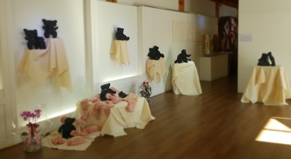 작가는 곰 인형에 자신만의 이야기를 불어 넣고 싶었다고 말한다. 20여 개의 인형을 검게 물들인 것도 어떠한 색에도 물들지 않고, 그 색을 지킬 수 있는 검은색만의 느낌을 곰 인형에 담아 표현하고 싶었기 때문.