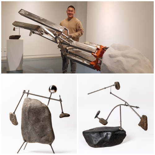 ‘소통의 매개이자 인간관계의 덩어리’를 ‘돌’로 은유하고, 철과 스테인리스를 사용해 그 돌과 돌을 서로 연결한다. 이 불안정한 연결 상태를 통해 ‘필요성에 의해 언제든 교체되는 현대 인간관계의 불안과 위태로움’을 형상화했다.