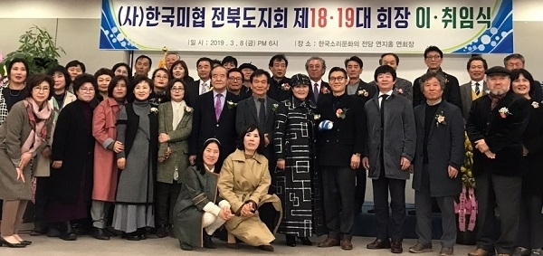 (사)한국미술협회 전라북도지회(이하 전북미협) 제18·19대 지회장 이·취임식이 지난 8일 전주 한국소리문화의전당 연회장에서 열렸다.