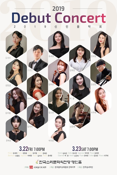 오는 22일과 23일 한국소리문화의전당 명인홀을 채우는 ‘2019 신인음악회’ 주인공들은 전북지역 대학에서 4년간 음악적 기량을 연마해왔다.