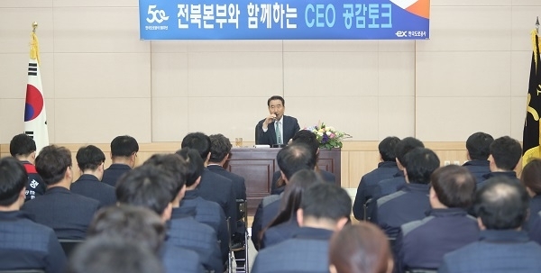 한국도로공사 이강래 사장은 20일 전북본부(본부장 이호경)을 방문, ‘전북본부와 함께하는 CEO 공감토크’행사를 통해 직원들과 대화의 시간을 가졌다.