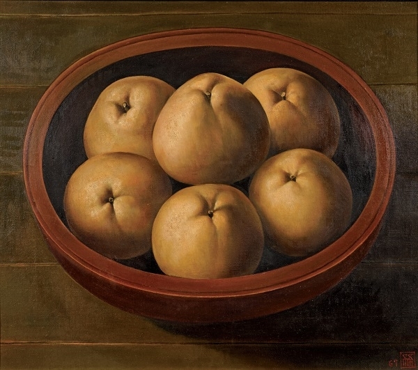 탐스럽게 익은 여섯 개의 배가 함지박 안에 가득히 담겨 있는 정물화다. 화면의 정중앙에 좌우대칭의 안정적인 구도를 이룬 이 작품은 충실한 원근법을 따르지 않아 다소 평면적인 느낌을 주지만, 치밀하고도 정밀한 묘사력으로 인해 시각적으로 극사실적인 회화 효과를 극명하게 보여준다.