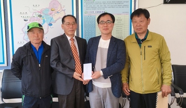 완주군 구이면 태봉초등학교 제16회 친목모임(이춘영 외 8명)이 강원도 산불로 피해를 입은 주민들을 위해 성금 45만원을 전달했다.