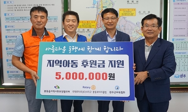 완주군 봉동읍지역사회보장협의체(공동위원장 신국섭, 김종년)와 국제로타리3670지구봉동로타리클럽(회장 한상현), 완주군바둑협회(회장 이용국) 3개 단체가 나눔 복지를 위한 협약을 지난 23일 체결했다.