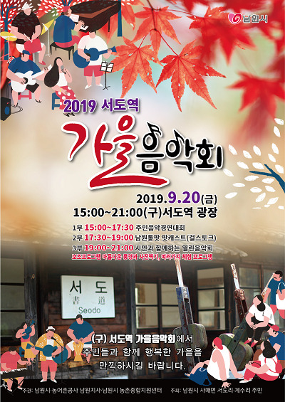 음악회는 오후 3시부터 9시까지 진행한다. 1부에서는 서도리 인근 마을 주민들의 재능을 뽐내는 시간으로 주민들의 음악경연과 장기자랑을 진행한다. 이어 2부는 남원통팟 팟캐스트 라이브라디오 방송이 진행되고 3부에서는 남원지역 음악인들의 재능기부를 통한 열린음악회가 열린다. 노봉마을 물박공연팀의 혼불아리랑, 남원시 청소년들의 비트박스와 댄스공연, 7080 통기타 라이브공연, 국악, 가곡, 트로트, 밴드음악 등 다채로운 공연이 준비됐다.