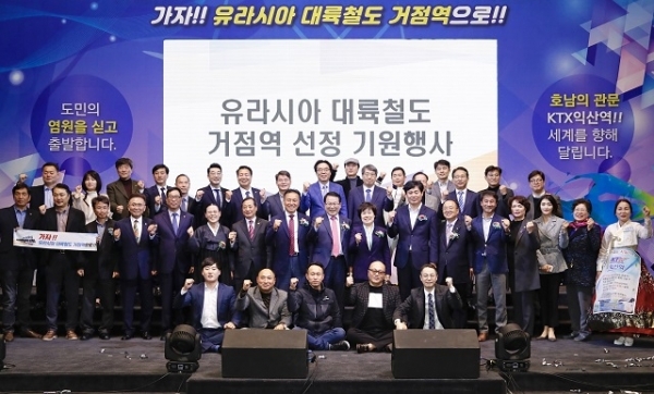 KTX 익산역이 유라시아 대륙철도 거점역으로 지정되길 바라는 시민들의 염원을 담은 기원행사 및 정책세미나 등이 열려 눈길을 끌었다.