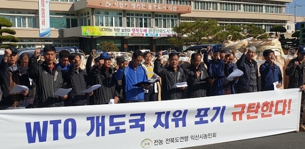 이어 “농민과 농업이 살아야 지역경제가 활성화되고 나라가 진정한 선진국이 되는 것이다”면서 정부의 WTO개도국 포기선언 철회를 요구했다.