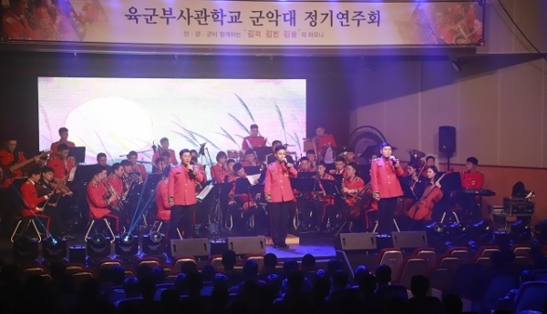 육군부사관학교(학교장 김한태 소장)는 지난 4일 학교 강당에서 학교 장병 및 군인가족, 지역주민 등 400여명이 참석한 가운데 민·관·군이 함께하는 ‘2019 정기 군악연주회’를 개최했다.