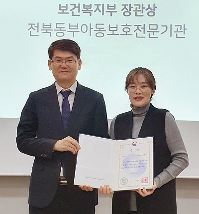 전북동부아동보호전문기관이 보건복지부에서 주최한 아동보호전문기관 성과평가에서 우수기관으로 선정돼 보건복지부 장관상을 수상했다.