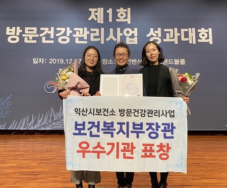 익산시보건소(소장 한명란)는 17일 보건복지부 주관으로 열린 ‘제1회 방문건강관리사업 성과대회’에서 방문건강관리사업 분야 우수기관으로 선정돼 보건복지부장관 기관표창을 수상했다.