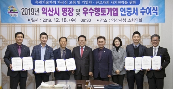 익산시는 18일 익산시청에서 2019년 익산시 명장 및 우수향토기업 인증서 수여식을 개최했다.