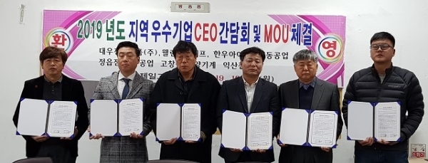 정읍 제일고등학교(교장 류천호)는 지난23일 교내 회의실에서 ‘2019년도 지역 우수기업 CEO 간담회및 MOU 체결 협약식’을 가졌다.
