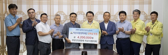 전문건설협회 익산시협의회(회장 박찬용)는 7일 정헌율 익산시장을 방문해 우수한 인재양성에 써 달라며 장학금 420만원을 기탁했다.