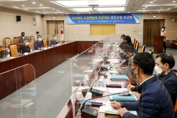 전북도는 8일 도청 종합상황실에서 초광역 협력 프로젝트 추진 상황 보고회를 열고, 추진 상황과 향후 계획을 공유하며 성공적인 추진을 다짐했다.