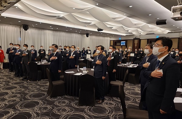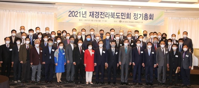 재경전북도민회는 22일 서울 청담동 프리마호텔에서 올해 첫 정기총회를 열고 코로나로 미뤄줬던 만남을 재개했다. 행사는 코로나 사태를 감안해 각 시·군 향우회장과 사무총장들만 참석하는 등 규모를 최소화 시켰다.