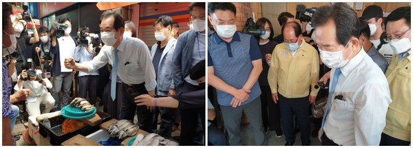 정 전 총리는 20일 익산시 중앙·창인동 수해현장을 찾아 “오늘 익산을 비롯해 전북 일원을 방문하게 됐는데, 지난 폭우로 피해를 입은 상인들을 위로하고 앞으로 어떻게 조금이라도 힘이 될 수 있을까 하는 방안도 챙겨보는 시간을 가지려 한다”면서 전통시장과 상가 서너 곳을 둘러봤다.
