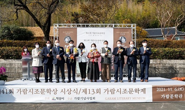 제41회 가람시조문학상 시상식 및 제13회 가람시조문학제가 6일 가람문학관에서 정헌율 익산시장, 유재구 시의장을 비롯한 가람 선생 유족, 이정환 한국시조시인협회 이사장 등이 참석한 가운데 열렸다.