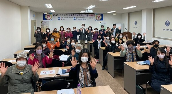 정읍시(시장 유진섭)가 주최하고 전북과학대학교(총장 이영준)가 주관한 ‘2021년 정읍시 글로벌 여성리더십 교육’이 지난10월27일부터 11월5일까지 지역사회 여성 이통장과 여성단체 지도자 등을 대상으로 실시됐다.