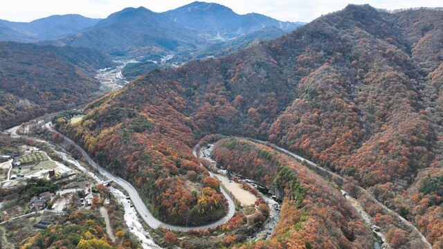 하늘에서 본 무주구천동 ‘자연품길'。 /무주군