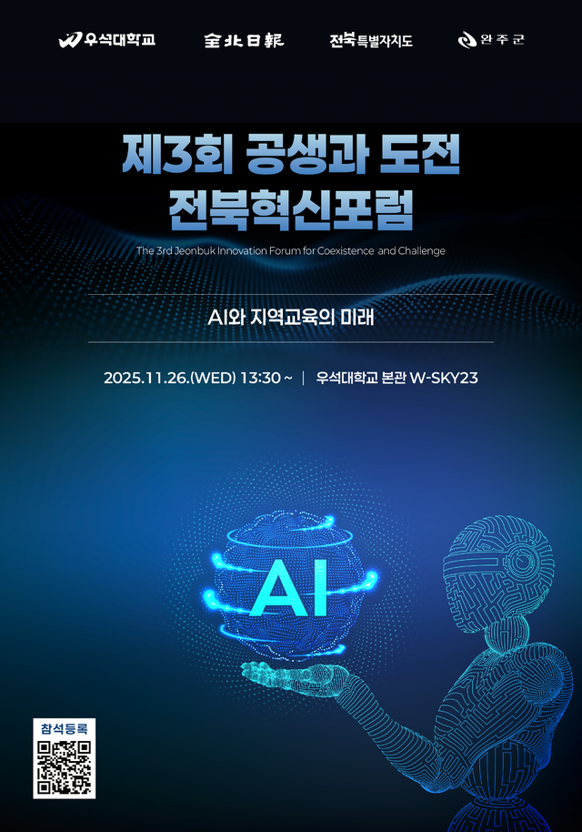 또 대학과 지자체가 함께 추진할 AI 기반 지역 상생 프로젝트의 방향을 모색할 예정이다. 완주군의 학교와 대학, 지역이 함께 책임 있는 미래 교육 협력 거버넌스를 설계하는 방안도 함께 논의된다.