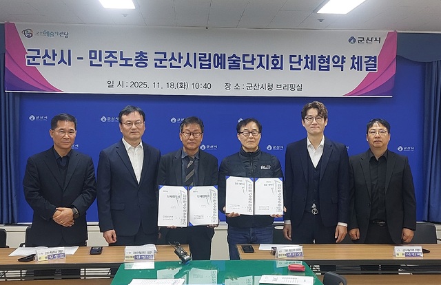 군산시와 민주노총 공공운수사회서비스노조 군산시립예술단지회(이하 노조)는 18일 시청 브리핑실에서 시립예술단의 운영 안정화와 지속적인 발전을 위한 단체협약을 체결했다.