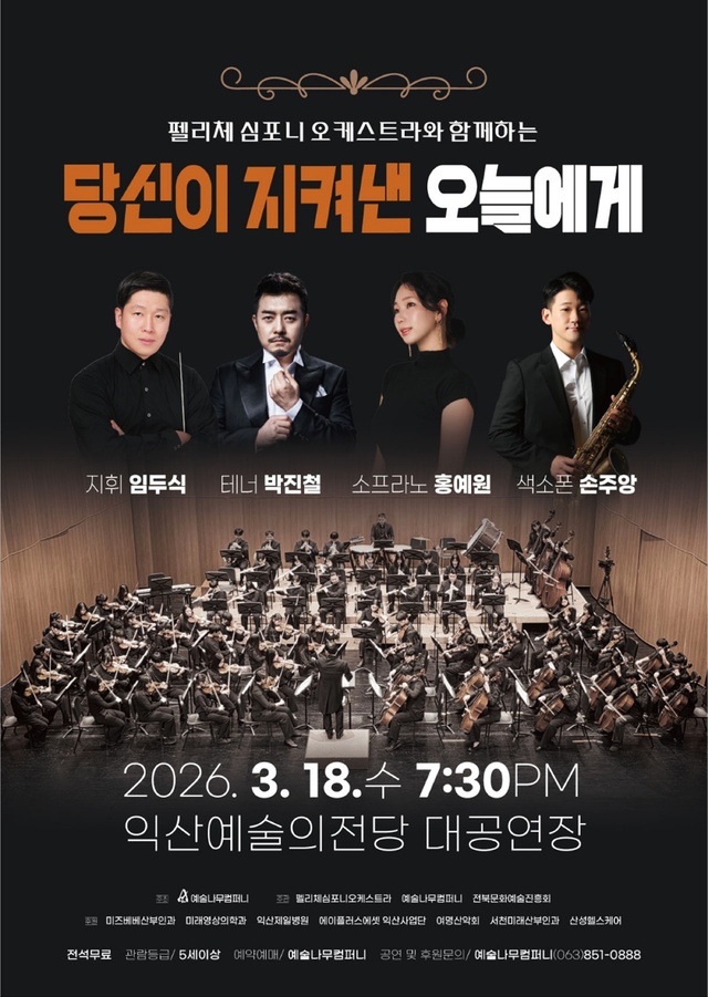오는 18일 익산예술의전당 대공연장에서는 펠리체심포니오케스트라와 함께하는 ‘당신이 지켜낸 오늘에게’가 펼쳐진다.