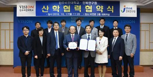 이날 전주비전대 회의실에서 열린 협약식에서 양 기관은 △미래 성장동력 발굴을 위한 공동연구 △지역발전에 필요한 정책 발굴 △연구자료 공유·활용 및 학술정보 교류 △양 기관 현안과제 협력 등에 합의했다.