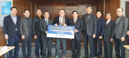 백은 김상열 회장이 기탁한 장학금 2억원은 매년 연초 쌍치면 관내 초등학교, 중학교에서 학업이 우수하지만 가정형편이 어려운 학생 2~3명을 선발해 각 5백여만원의 장학금을 지급하는데 쓰여질 예정이다.