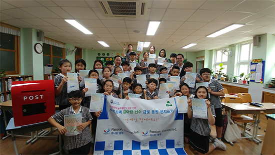 이날 행사에는 500여명의 전교생이 참여한 가운데 2018년 2월 9일부터 2월 25일까지 강원도 평창군에서 열리는 ‘2018 평창 동계올림픽대회’의 성공적인 개최를 기원하고, 쇼트트랙 종목에 국가대표로 출전하는 이 학교 출신 김아랑 선수의 경기모습을 시청하면서 그림편지와 손편지를 써서 김아랑 선수의 금빛 메달을 응원했다.