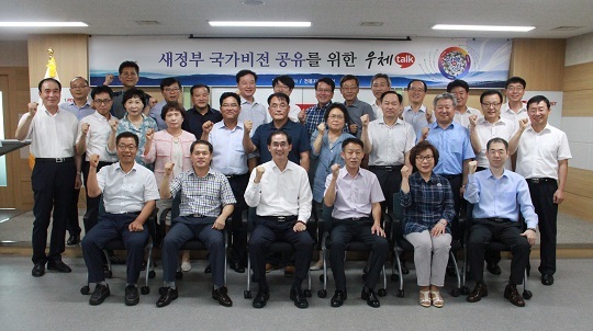 전북지방우정청(청장 김병수)은 27일 청사 라이브Post홀에서 도내 시·군 우체국장과 우정청 간부들이 참석한 가운데 새정부 국가비전인 공유를 위한 토론회를 가졌다.