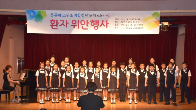 남원의료원(원장 박주영)은 3일 의료원 지하 1층 대강당에서 큰은혜소년소녀합창단과 함께하는 환자 위안 음악회를 개최했다.