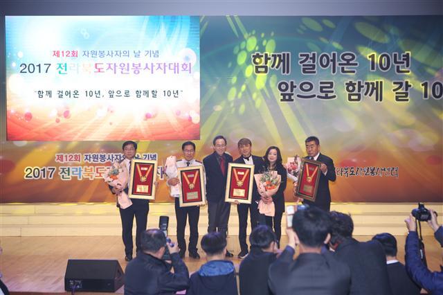(사)전라북도자원봉사센터(이사장 김기원)는 29일 전북도청 공연장에서 제12회 자원봉사자의 날(12월 5일)을 기념해 도내 자원봉사자들의 노고를 격려하고 한 해를 마무리 하는 ‘2017 전라북도 자원봉사자대회’를 개최했다.