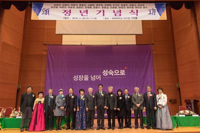 전북대는 지난 28일 오전 교내 진수당 가인홀에서 2월 말로 정년을 맞은 교수들에 대한 정년기념식을 열었다.