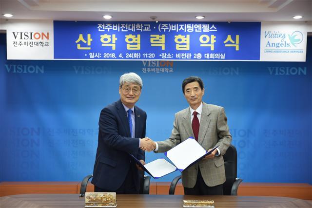 전주비전대 회의실에서 열린 이날 협약식에는 한영수 총장과 김한수 대표이사 등 양측 관계자 10여 명이 참석했다.
