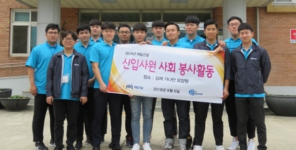 (주)제일건설 2018년 하반기 정기공채 신입사원 13명은 지난 6일 김제 가나안요양원을 찾아 시설 주변 환경정화 봉사활동으로 값진 구슬땀을 흘렸다.