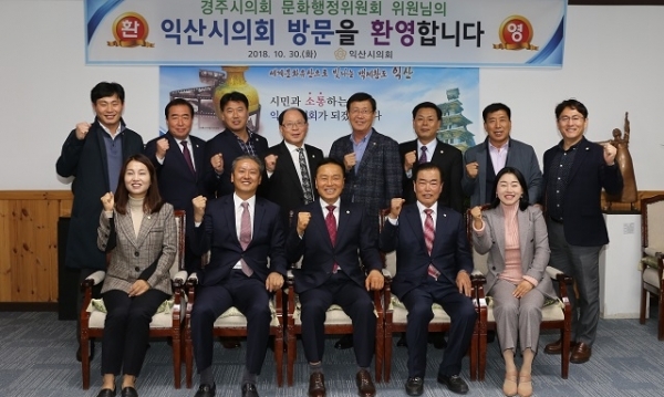 익산시 자매도시인 경주시의회 의원들이 지난 30일 익산시의회를 방문해 상생협력방안 모색을 위한 소통과 화합의 자리를 가졌다.