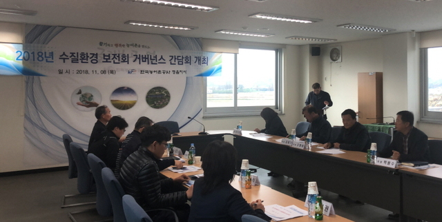 한국농어촌공사 정읍지사(지사장 신진균)는 지난 8일 지사 소회의실에서 ‘2018 수질환경 보전회 거버넌스 간담회’를 개최해 정읍지사에서 관리하는 농업용 저수지의 수질환경보전을 위한 각계 역할 분담과 녹조저감 방안에 대해 논의했다.