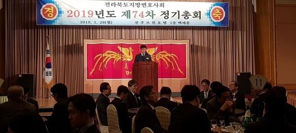 전북지방변호사회는 지난 28일 전주 르윈호텔에서 소속 회원 130여명이 참석한 가운데 ‘2019년도 제74차 정기총회’를 열었다.