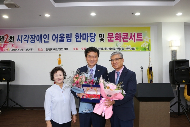 이날 김 의원은 전북시각장애인연합회 전주시지회(지회장 노창옥) 주관으로 열린 ‘제2회 시각장애인 어울림 한마당 및 문화콘서트’행사에서 시각장애인의 권리증진을 위해 기여한 공로를 인정받았다.