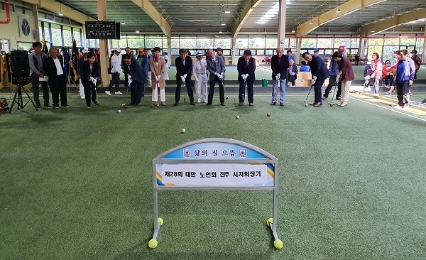 제28회 대한노인회 전주시지회장기 게이트볼대회가 지난 24일 전주 송천동 게이트볼 전용구장에서 열렸다.