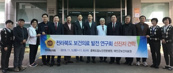 전북도의회 도의회 보건의료 발전방안 연구회(황의탁 대표의원)는 5일부터 6일까지 이틀간 태안군 보건의료원과 충북도립노인전문병원 선진지 견학에 나섰다.