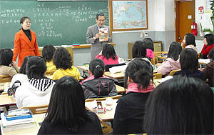 이들 두 교사는 5년전 학술회의 때 만나 해마다 상대 학교를 찾아 공동수업을 하는 것으로 유명하다.