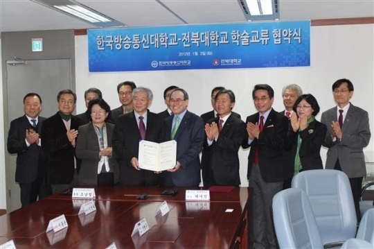 두 대학은 3일 서울 종로 한국방송통신대학교에서 서거석 전북대 총장과 조남철 한국방송통신대 총장 등이 참석한 가운데 협약식을 가졌다. 이번 협약에 따라 두 대학은 교직원과 학생 등 인적 교류를 실시하고, 상호 대학에서 수업을 들을 경우 상호 학점도 인정키로 했다.