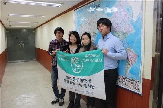 해외 과학나눔 봉사활동에 참여하는 학생들은 이거성(물리 2년)을 비롯,이승희(식품영양 2년), 박하양(국어국문 2년), 조재환(지구환경과학 2년) 등으로 구성된 '과학방위대'팀.